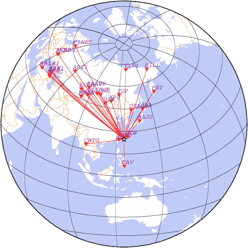Параметры землетрясения в районе Юго-запад островов Р СЋРєСЋ, РЇРїРѕРЅРёСЏ, время 2026-01-26 10:49:19, широта 24.95, долгота 125.40, глубина 50 км, mb: 4.6/28 рассчитаны по станциям:
