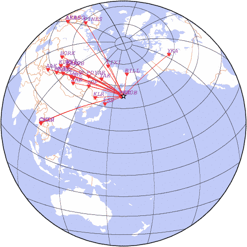 Параметры землетрясения в районе Восточное побережье Камчатки, время 2026-01-27 03:52:57, широта 53.17, долгота 160.81, глубина 50 км, mb: 4.6/15 рассчитаны по станциям: