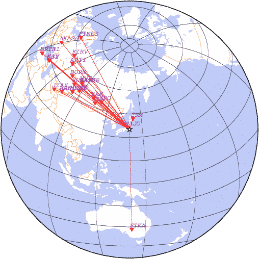 Параметры землетрясения в районе Восточное побережье РҐРѕРЅСЃСЋ, РЇРїРѕРЅРёСЏ, время 2026-01-29 01:25:12, широта 35.04, долгота 140.13, глубина 10 км, mb: 4.7/19 рассчитаны по станциям: