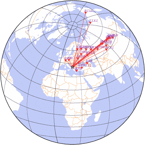 Азимут | Точность | Ms | mb |