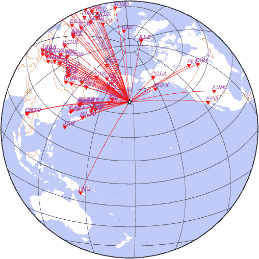 Азимут | Точность | Ms | mb |