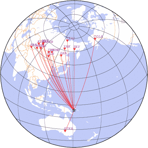 Азимут | Точность | Ms | mb |