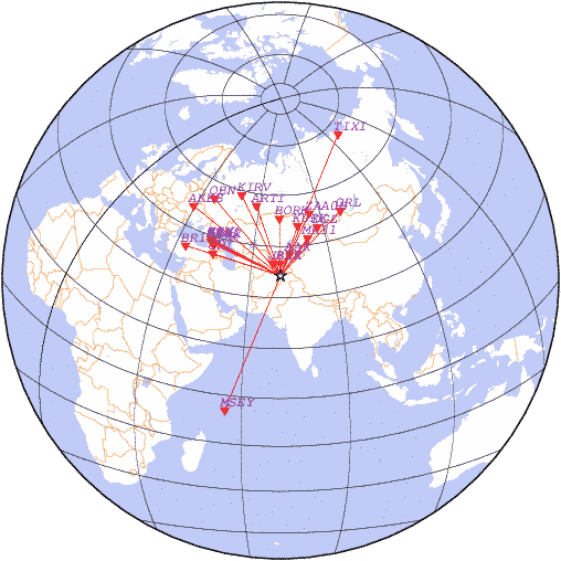 Параметры землетрясения в районе Район Гиндукуш, Афганистан, время 2026-03-21 17:13:51, широта 36.37, долгота 70.86, глубина 90 км, mb: 4.7/13 рассчитаны по станциям: