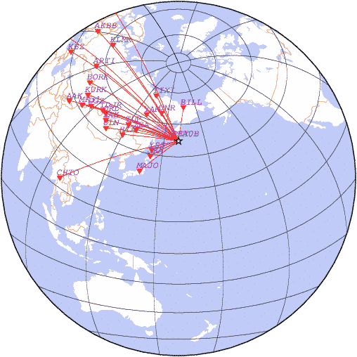 Параметры землетрясения в районе РЈ восточного побережья Камчатки, время 2026-03-23 20:37:25, широта 52.18, долгота 160.65, глубина 33 км, mb: 4.6/19 рассчитаны по станциям: