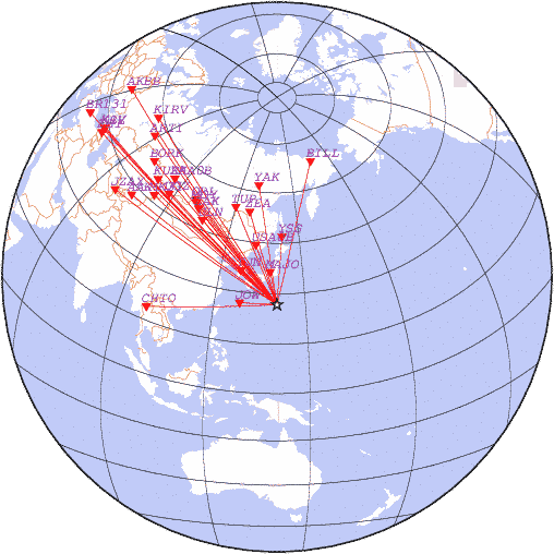 Параметры землетрясения в районе Район островов Бонин, РЇРїРѕРЅРёСЏ, время 2026-03-24 15:05:22, широта 26.81, долгота 140.66, глубина 500 км, mb: 4.4/24 рассчитаны по станциям:
