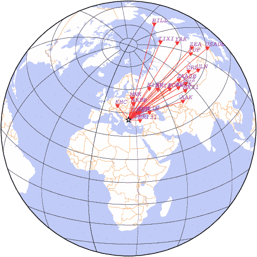 Азимут | Точность | Ms | mb |
