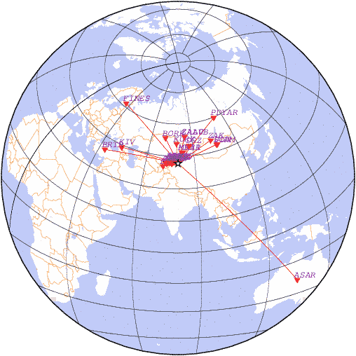 Азимут | Точность | Ms | mb |