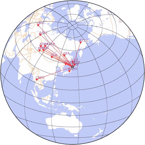 Параметры землетрясения в районе Район Хоккайдо, РЇРїРѕРЅРёСЏ, время 2026-03-27 17:19:14, широта 41.19, долгота 142.66, глубина 33 км, mb: 4.4/9 рассчитаны по станциям: