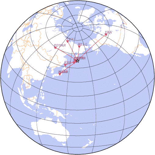 Параметры землетрясения в районе РЈ восточного побережья Камчатки, время 2026-03-28 01:18:04, широта 52.52, долгота 161.73, глубина 33 км, mb: 3.6/4 рассчитаны по станциям: