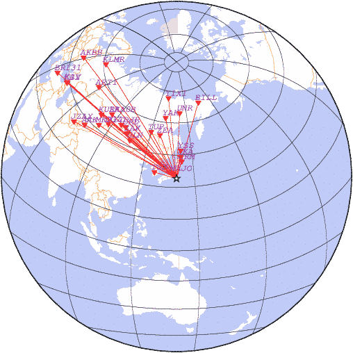 Параметры землетрясения в районе Восточное побережье РҐРѕРЅСЃСЋ, РЇРїРѕРЅРёСЏ, время 2026-03-31 15:38:47, широта 34.05, долгота 140.00, глубина 100 км, mb: 4.8/22 рассчитаны по станциям:
