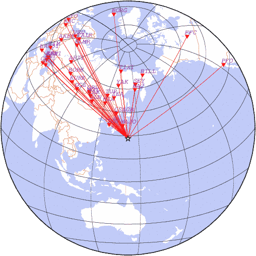 Азимут | Точность | Ms | mb |