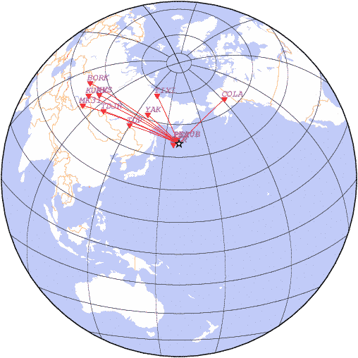 Параметры землетрясения в районе РЈ восточного побережья Камчатки, время 2026-04-04 21:50:40, широта 51.13, долгота 160.03, глубина 25 км, mb: 4.3/10 рассчитаны по станциям: