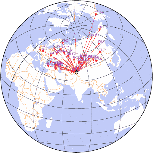 Азимут | Точность | Ms | mb |