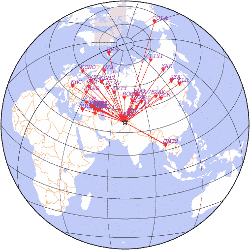 Параметры землетрясения в районе Район Гиндукуш, Афганистан, время 2026-04-18 02:54:21, широта 36.70, долгота 70.91, глубина 200 км, mb: 5.3/27 рассчитаны по станциям: