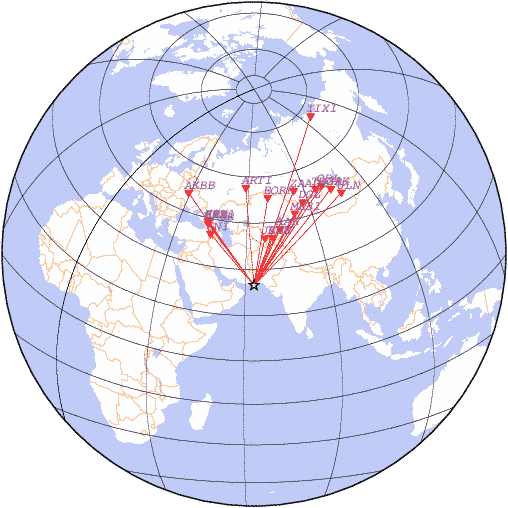 Параметры землетрясения в районе РЈ побережья Пакистана, время 2026-04-18 08:49:32, широта 24.95, долгота 63.09, глубина 25 км, mb: 4.6/16 рассчитаны по станциям: