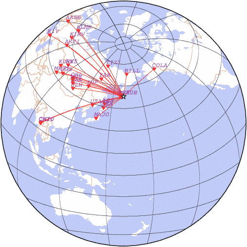 Параметры землетрясения в районе РЈ восточного побережья Камчатки, время 2026-04-25 13:23:32, широта 52.93, долгота 161.07, глубина 33 км, mb: 4.5/18 рассчитаны по станциям: