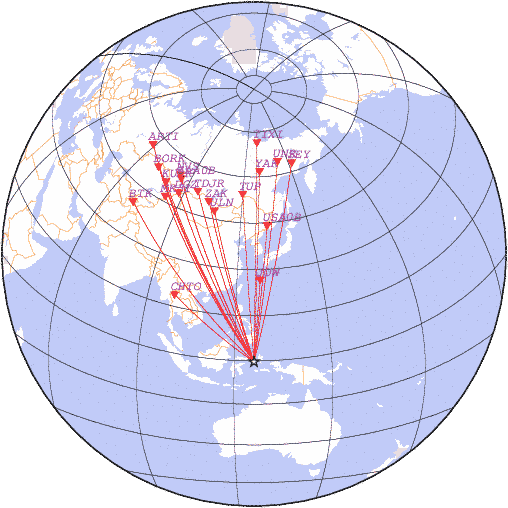Параметры землетрясения в районе Юг Молуккского РјРѕСЂСЏ, время 2026-04-25 17:40:19, широта -0.38, долгота 126.07, глубина 10 км, mb: 4.8/18 рассчитаны по станциям: