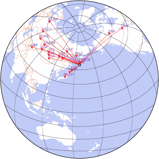 Параметры землетрясения в районе Курильские острова, время 2026-04-25 22:57:26, широта 50.13, долгота 156.88, глубина 33 км, mb: 4.4/10 рассчитаны по станциям: