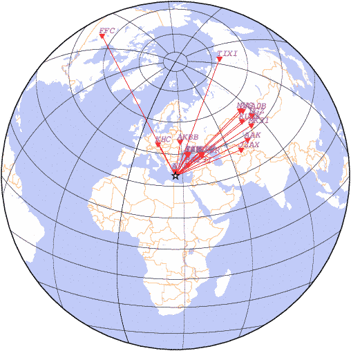 Азимут | Точность | Ms | mb |