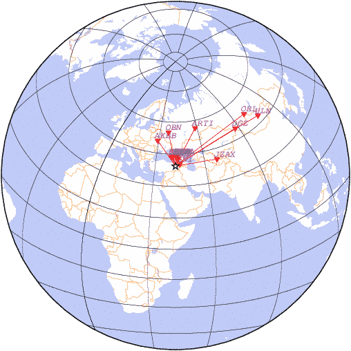 Параметры землетрясения в районе Турция, время 2026-04-26 16:48:26, широта 39.32, долгота 42.15, глубина 10 км, mb: 4.2/4 рассчитаны по станциям: