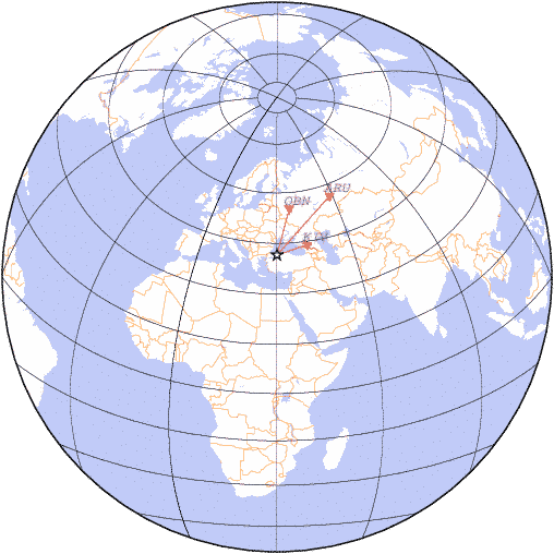 Параметры землетрясения в районе Турция, время 1999-08-17 05:45:30, широта 41.46, долгота 30.31, глубина 33 км, ms: 3.4/2 рассчитаны по станциям: