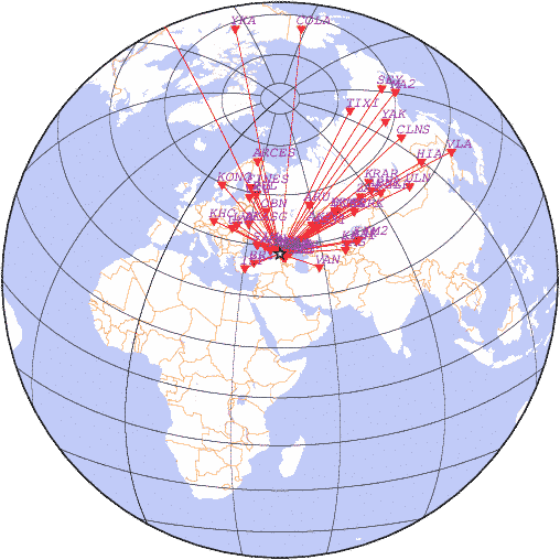 Азимут | Точность | Ms | mb |